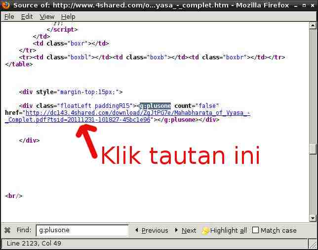 2. Akan muncul jendela baru. Tekan ctrl+F, kemudian ketikkan g:plusone, dan tekan enter.