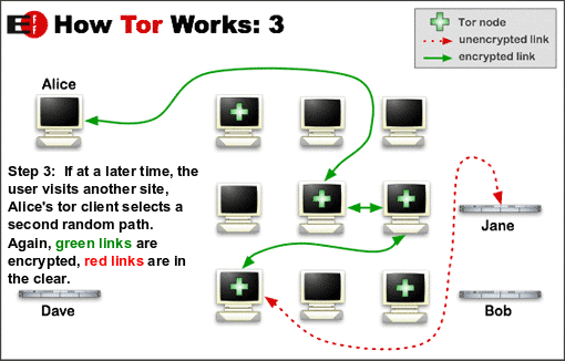 Intinya Tor mengacak lalu lintas data di antara para pemakainya. Semakin banyak pemakai Tor, maka tingkat kerahasiaan akan semakin besar. Untuk lebih jelasnya bisa baca di sini. Saat ini Tor bisa bekerja di Linux, Android , Mac, dan Windows.